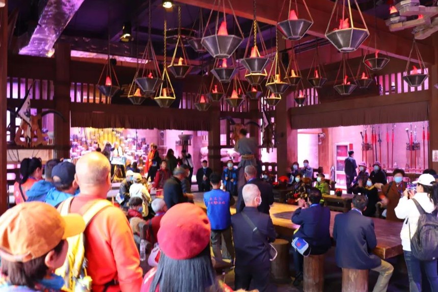 第一站 景区开门迎宾 第二站 占鳌寨 来到占鳌寨 就会被热闹的演艺所吸引 武斗聚义厅、龙王庙祈福、祭酒神…… 每一位游客既是看客,也是故事的亲历者 让您与故事中的人物在这里邂逅
